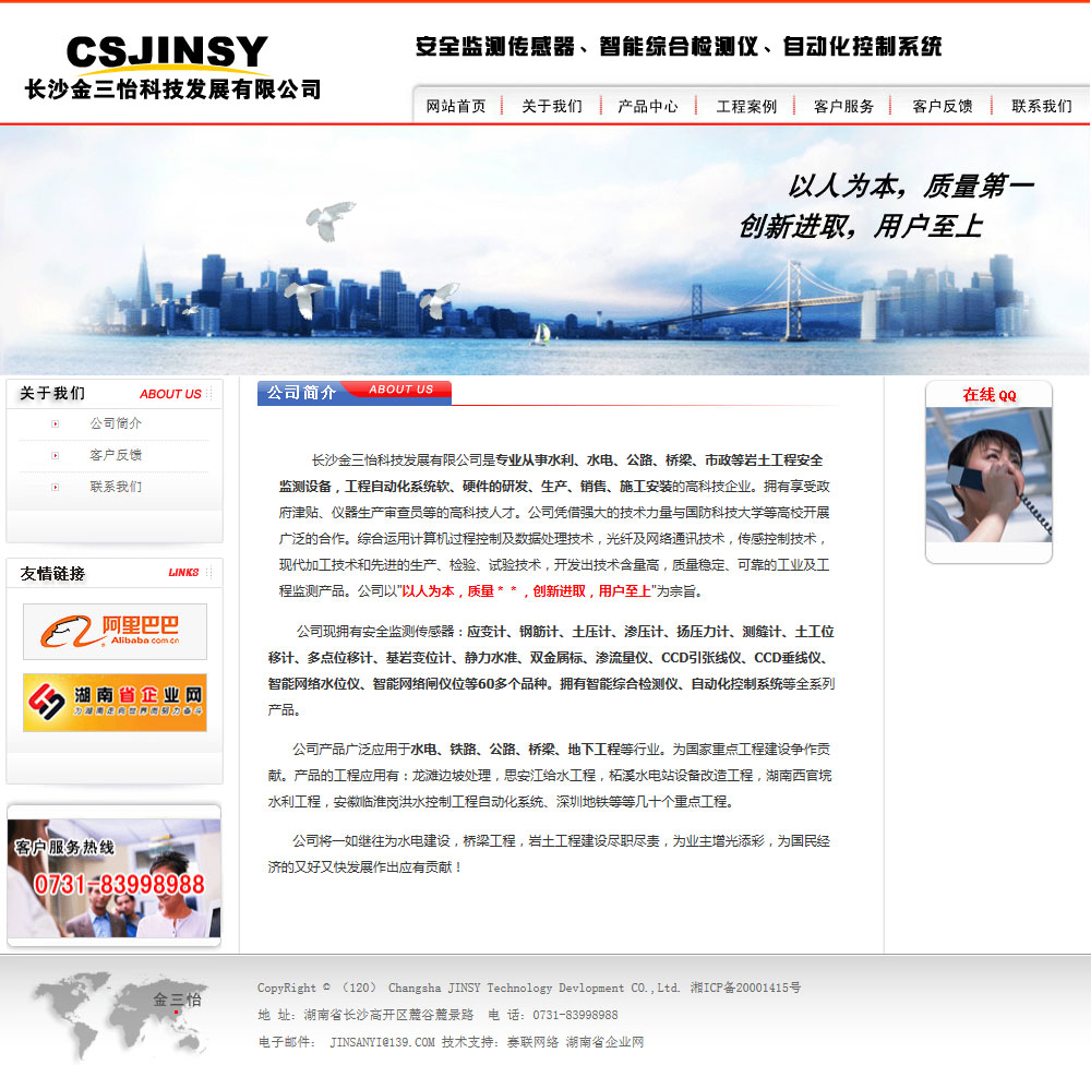 长沙金三怡科技发展有限公司是专业从事水利、水电、公路、桥梁、市政等岩土工程安全监测设备,工程自动化系统软、硬件的研发、生产、销售、施工安装的高科技企业。拥有享受政府津贴、仪器生产审查员等的高科技人才。公司凭借强大的技术力量与国防科技大学等高校开展广泛的合作。综合运用计算机过程控制及数据处理技术,光纤及网络通讯技术,传感控制技术,现代加工技术和先进的生产、检验、试验技术,开发出技术含量高,质量稳定、可靠的工业及工程监测产品。公司以