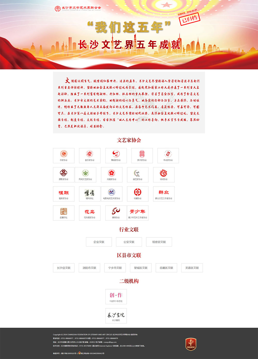 文随国运同生气,姹紫嫣红盛世开。过去的五年,长沙文艺界坚持深入学习贯彻习近平总书记系列重要讲话精神,坚持以社会主义核心价值观为引领,围绕党和国家工作大局开展了一系列重大主题活动,推出了一系列富有创新性、开拓性、标志性的重大举措,彰显了省会担当,成为了全省文艺的排头兵。长沙市文联的艺术家们,以创新的信心与勇气,以务实的行动与担当,斗志昂扬,与时俱进,创作出了无数鼓舞人民群众奋发向上的文艺作品,在各个艺术门类,屡获殊荣,可嘉可许,可圈可点。在长沙第八届文联班子带领下,长沙文艺界紧贴时代脉搏,高扬社会主义核心