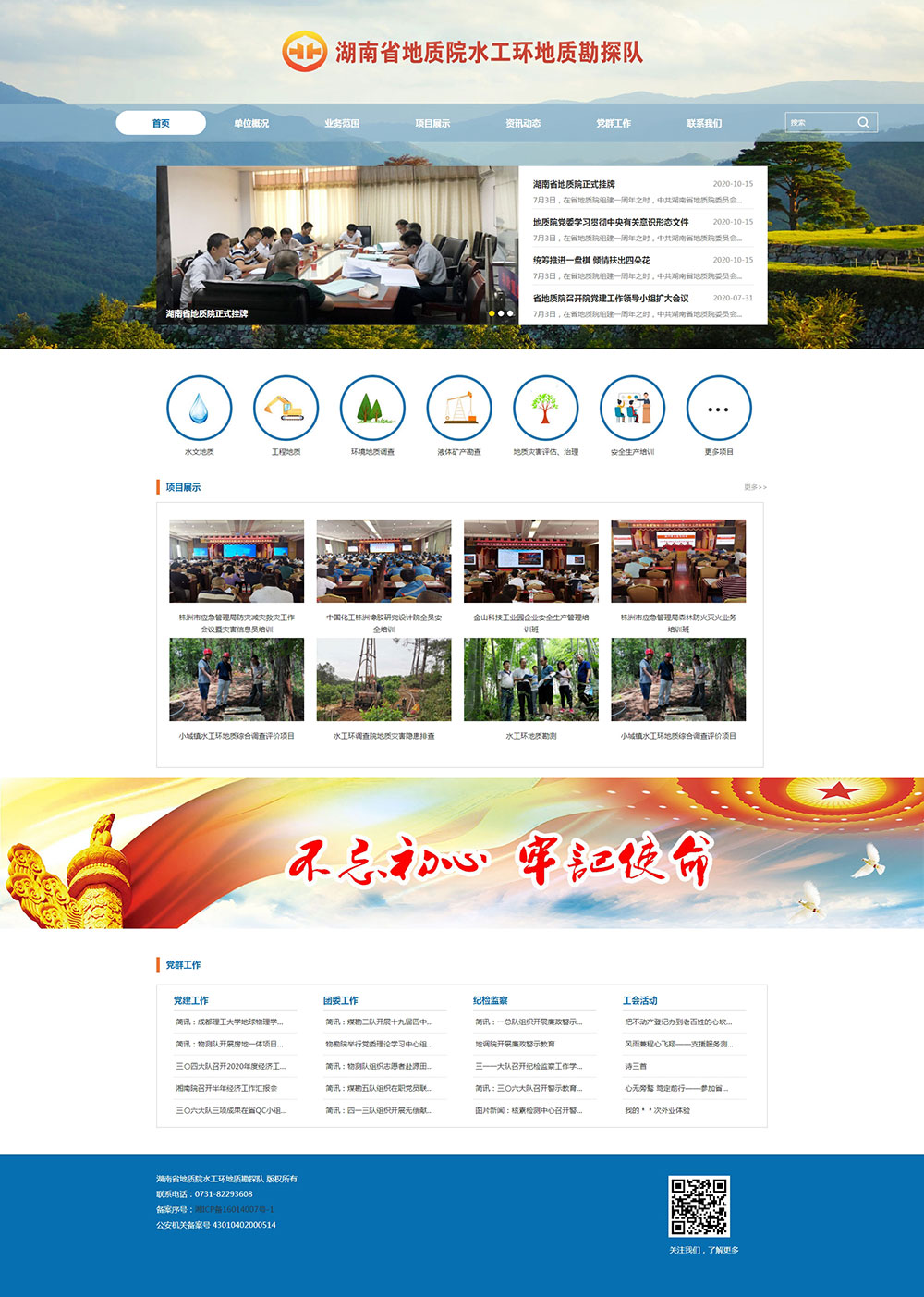 湖南省地质院水工环地质勘探队于2013年5月成立,是由原株洲煤田地质技工学校、原湖南省煤田地质局试验室、原湖南省煤田地质局制印中心三家事业单位和湖南省勘查设计研究院等六家企业合并组建而成,注册地在长沙。我队根据产业结构下设4个经济实体:湖南省勘查设计研究院、试验检测中心、教育培训中心、湖南省煤田地质局制图印刷厂;经营范围为矿产地质调查、勘察;水文地质勘察;工程地质勘察;环境地质勘察;地质测绘、地质勘探工程;煤炭资源储量评估;矿山安全程度评估及建设项目评价;相关社会服务。